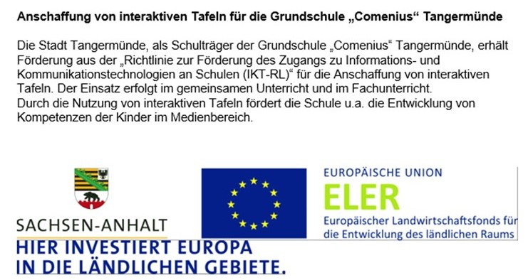 Strukturelle Verkabelung sowie Anschaffung von Multimediatechnik (schulisches WLAN, Anzeige- und Interaktionsgeräte, schulgebundene mobile Endgeräte) für die Grundschule Comenius Tangermünde.